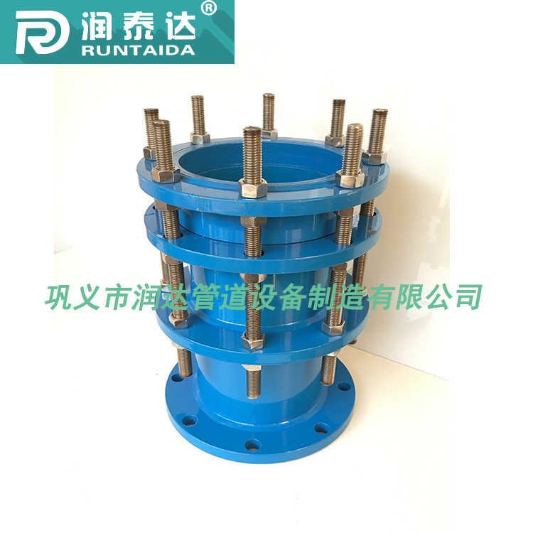 鞏義市潤達管道設(shè)備制造有限公司生產(chǎn)的松套傳力接頭采用金屬鑄造或焊接組成,松套部位選用梯形橡膠密封圈,在壓蓋和螺栓的作用下利用橡膠壓縮彈性變形原理,迫使密封圈變形于松套傳力接頭本體伸縮管外壁之間進行靜密封